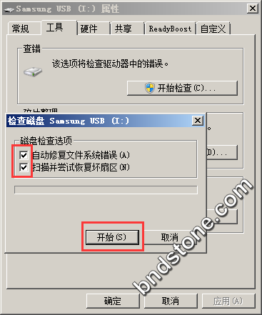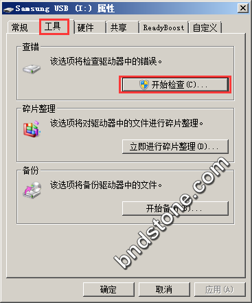 在弹出的对话框选择【工具】选项卡,并选择【开始检查】按钮