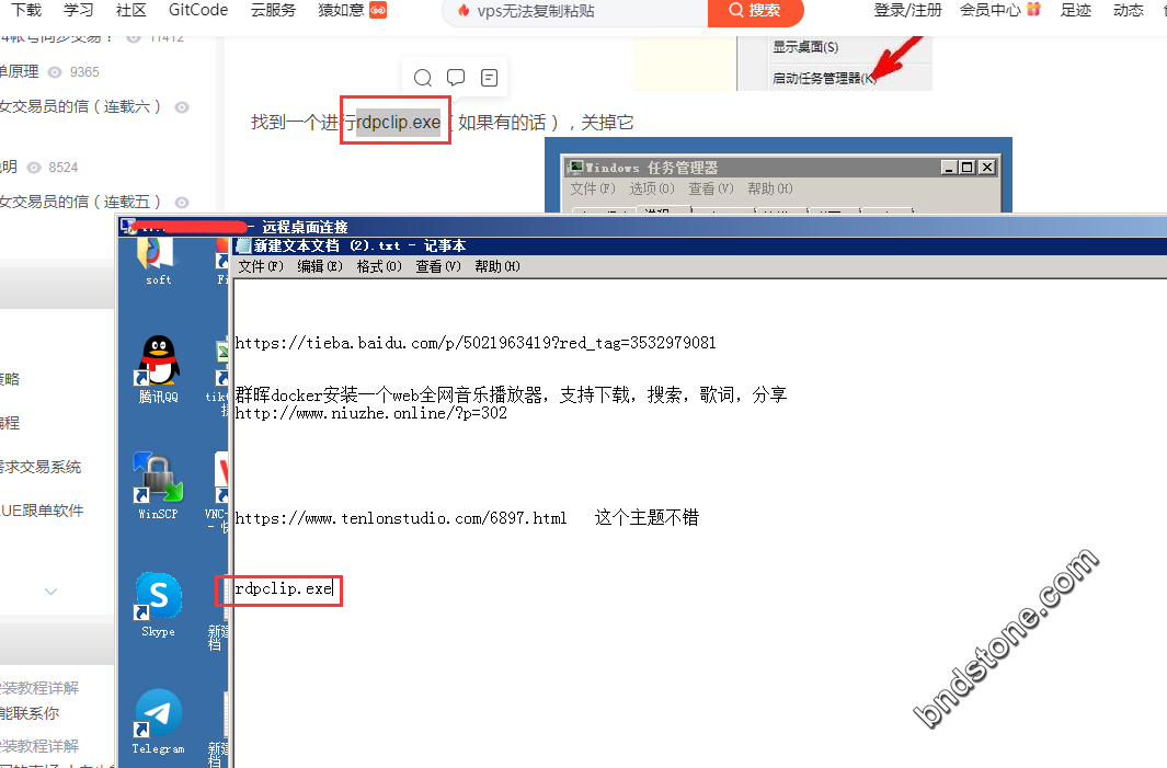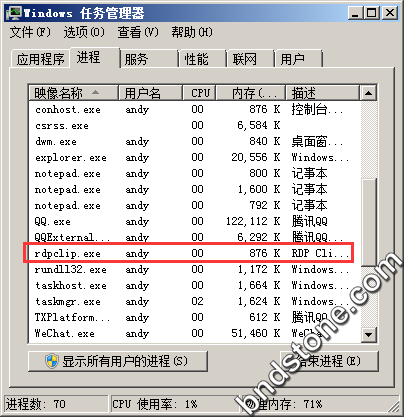2-1. 远程查看是否打开了 “rdpclip.exe” , 没有的话就打开.