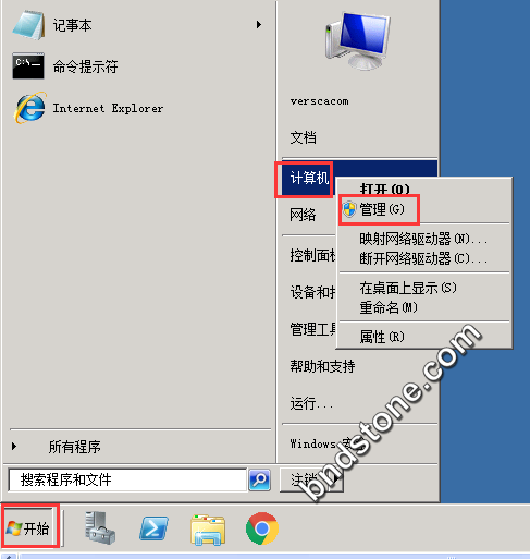 1. 确认电脑中已有其他具有管理员权限的帐号后,【开始】-【右键计算机】-【管理】。