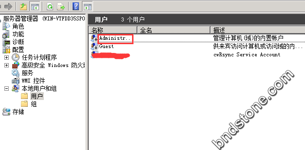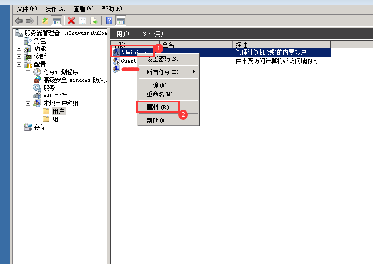 2. 【服务器管理器】-【配置】-【本地用户和组】-【用户】。
