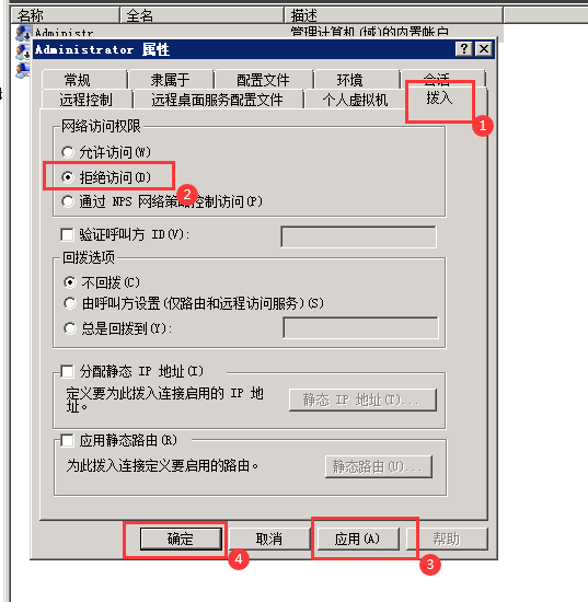 4-2. 拨入 – 拒绝访问 – 应用 – 确定