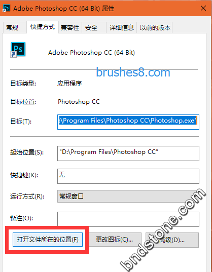 1、右击你的PS图标,然后点击属性>>点击打开文件所在的位置;