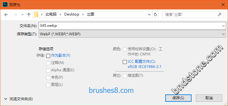 安装完插件后就可以在存储为的时候看到保存类型可以选择webp格式了。