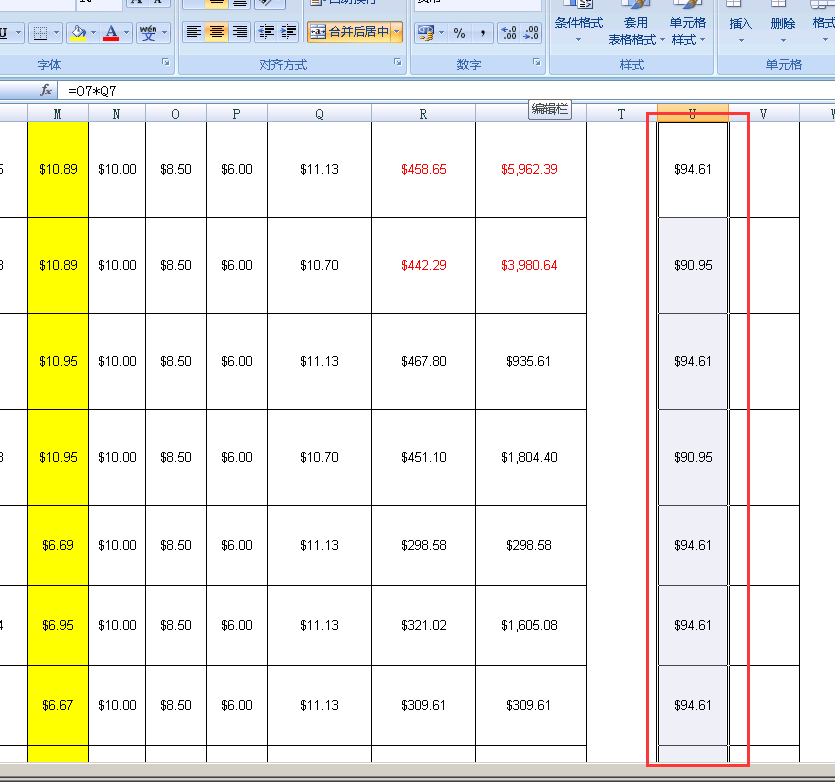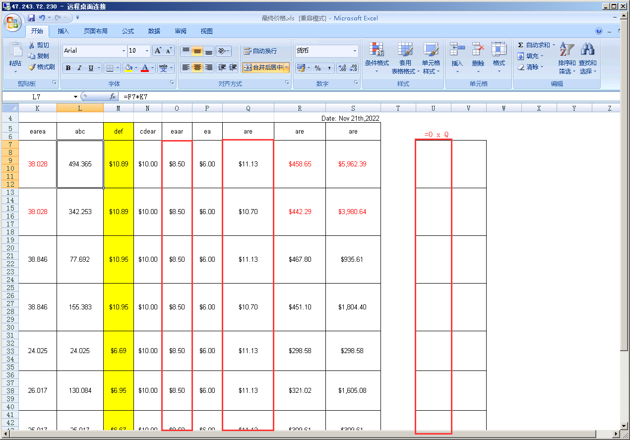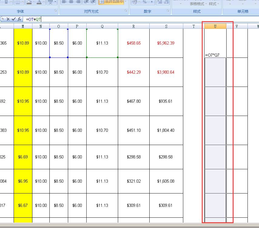 例如我想计算 “O” 这列 x “Q” 这列,因为合并单元格,直接往下拉肯定是不行的.