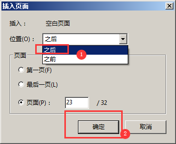 8-2. [右键点击 第 23 页] – [插入页面] – [空白页面] – [位置:之后] – [确定]